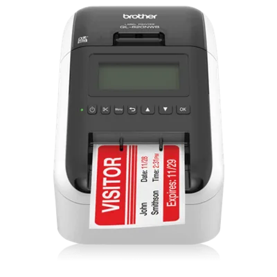 Connects over USB, Wi-Fi, or Bluetooth, prints on 62mm continuous roll labels, and supports DK-2251 stock for crisp red and black output. One roll handles hundreds of badges before you need to swap it out.